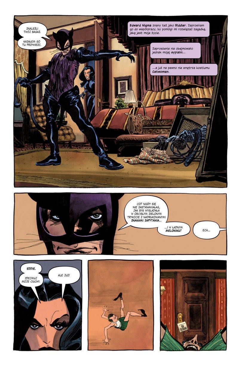 Selina Kyle alias Catwoman jest jedną z najbardziej ikonicznych superbohaterek. Choć tak naprawdę to określenie nie do końca pasuje do balansującej na granicy prawa Kotki. W masowej wyobraźni budzi ona często jednoznaczne skojarzenia, jakże skrajne względem chłodnego erotycznie Batmana. Jeph Loeb idzie temu na przekór. Selina pozostaje wprawdzie pięknością, ale przede wszystkim jest świadomą swych sił i słabości kobietą, potrafiącą ograć uzbrojonych mafiozów, a nawet superłotrów jak Cheetah. Scenarzysta w znakomity sposób gra też motywem jej relacji z Batmanem i jego prawdziwą tożsamością.