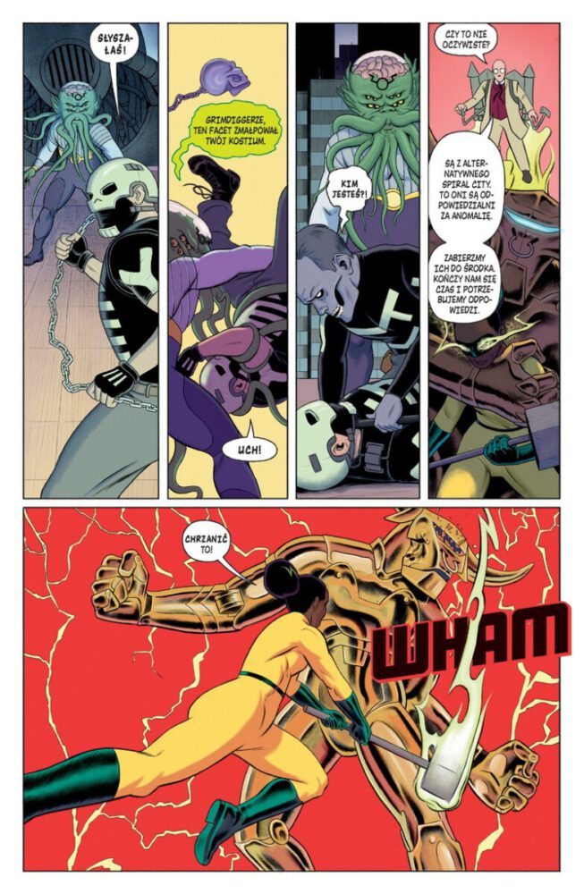 Lucy staje naprzeciwko zagrożenia, które nawet na jej miarę jest stanowczo zbyt wielkie. Do pomocy ma jedynie niestabilnego Skulldiggera, który dotąd zajmował się lokalną bandyterką, a gdzieś tam w swoich przestworzach istnieje sobie Pułkownik Weird. Nie jest to drużyna zdolna przeciwstawić się czemukolwiek, zwłaszcza gdy we wszystko wmiesza się Sherlock Frankenstein i jego drużyna superłotrów. Historia ta pełznie do przodu już samą siłą rozpędu i choć warsztatowo autor jest solidny, a i idea niebrzydka, to ogień w piecu napędzającym to wszystko wygasł.