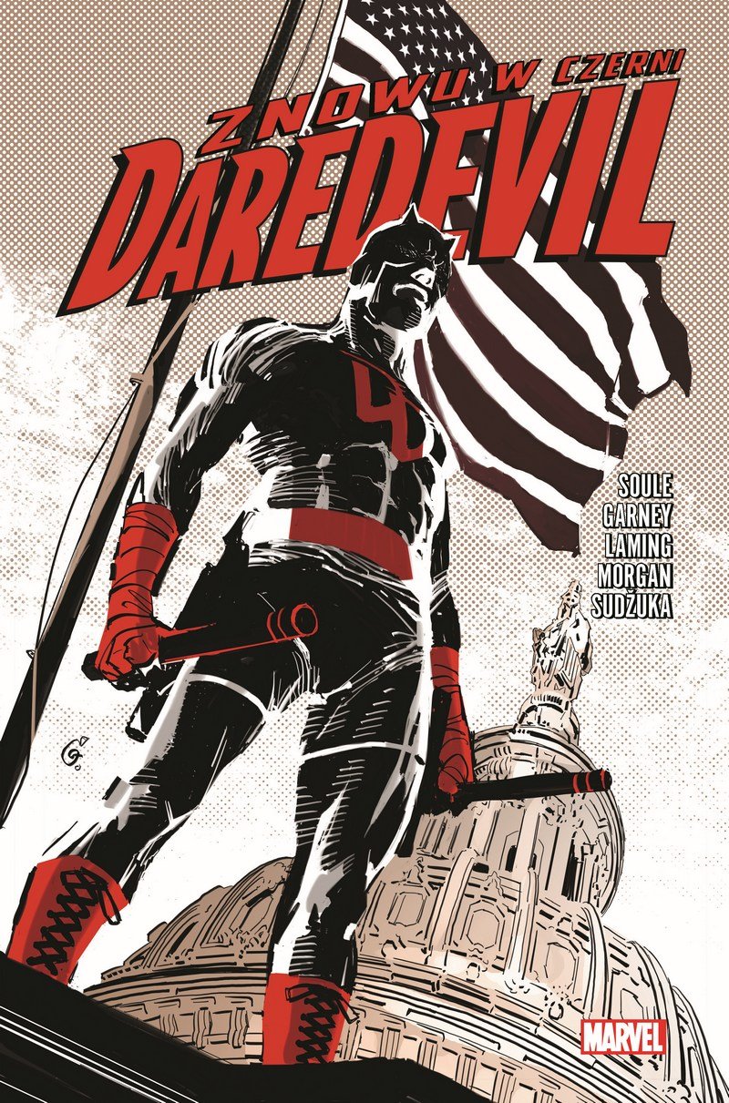 Daredevil – Znowu w czerni tom 2 mocniej stawia na prawniczą część życia Murdocka. I jeśli zazwyczaj była ona dość luźno powiązana z jego superbohaterskim wcieleniem, tak teraz obie te kwestie biegną jednym torem. A wszystko przez niepozorną grupkę łotrów, za którą stoi pewien potężny i wpływowy przeciwnik śmiałka. Batalie sądowe okazują się tu znacznie ciekawsze niż uliczne przepychanki. Murdock i Daredevil pospołu zasiadają na sali sądowej, a fakt ten może okazać się dla niektórych niebezpiecznych precedensem… Może to nie poziom Grishama, ale Soule sprawnie łączy komiks superbohaterski z dramatem sądowym.
