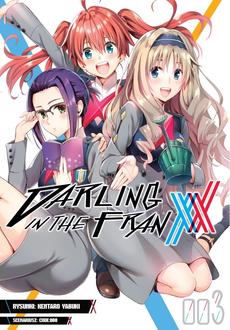 Na przestrzeni omawianych trzech tomów mangi historia kręci się w głównej mierze wokół destrukcyjnej natury Zero Two oraz wokół tego, czy Hiro zdoła przeżyć trzeci lot z nową partnerką. I w sumie tego się nie dowiadujemy – pod koniec tomu trzeciego dochodzi do dużego starcia z kyoryu, w której udział bierze również Hiro wraz z Zero Two. Trochę czasu poświęcono tu także na wyjaśnieniu zasad kierowania Franxxami. Dowiadujemy się miedzy innymi, że podczas pilotowania dochodzi do połączeni umysłów słupka i pręcika, co jest dość intymne i wymaga odpowiedniego współgrania dwóch pilotów. Nie wszystkim się to od razu udaje. Na przestrzeni 20 rozdziałów poznajemy też kilka innych postaci, bo nie tylko Hiro i Zero Two mają tu znaczenie. Z pozostałych szczególnie wyróżnia się Ichigo (015), która jest przywódcą zespołu i świetnie sprawdza się jako słupek. Jest jeszcze ciągle niezadowolony Mistsuru (326) oraz stłamszona przez niego Ikuno (196). Niestety, przez trzy tomy nie poznałem nikogo na tyle dobrze, aby go polubić.