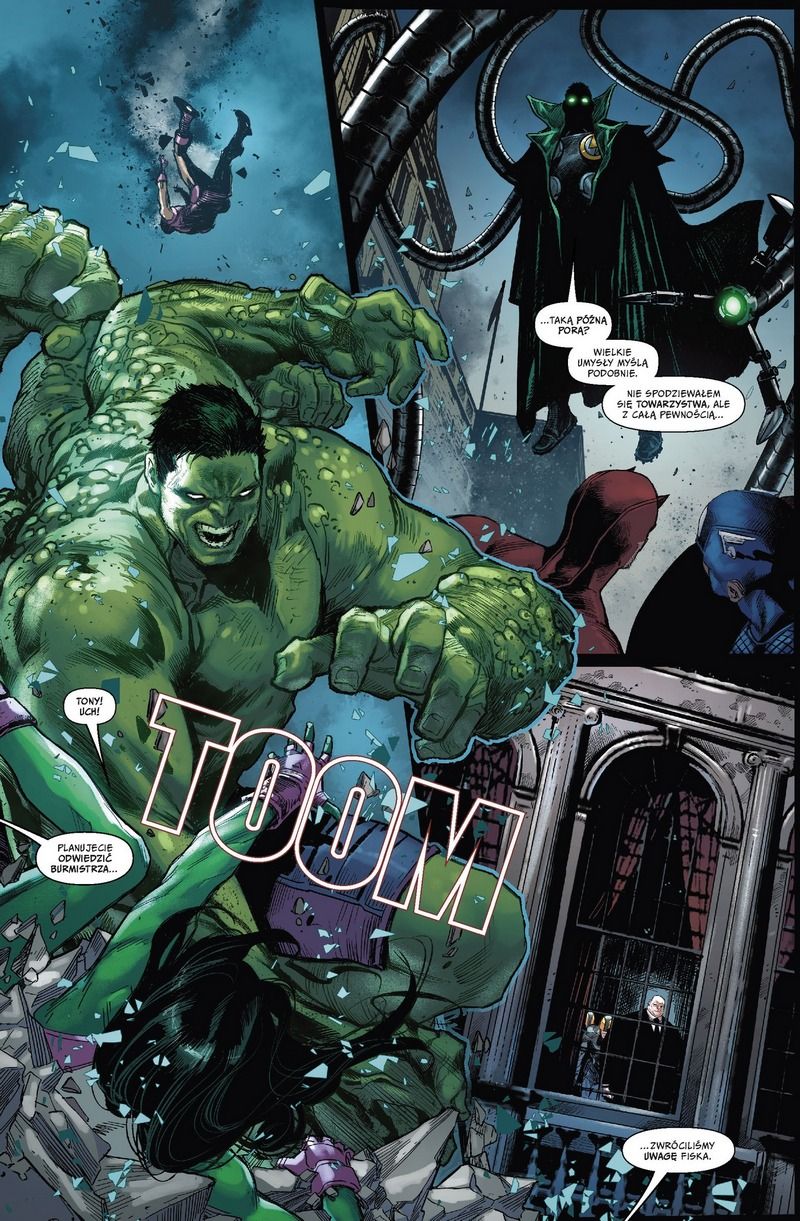Diabelskie rządy to finał, którego się obawiałem. Najbardziej tego, że wszystko będzie czarno- białe i powróci nudny status quo. Tymczasem motywy Fiska nie są rojeniami szaleńca. Postać miała już swoje niezłe momenty w historii, ale tu najlepiej widać, jakim jest człowiekiem. Także Daredevil i Daredevilówna są innymi osobami niż wcześniej, a światkowi herosów czkawką odbiła się wojenka Starka i Rogersa sprzed lat. Fani eventów będą zadowoleni, tak samo jak miłośnicy bardziej złożonych opowieści ze Śmiałkiem. Jeden z najciekawszych crossoverów ostatnich lat.