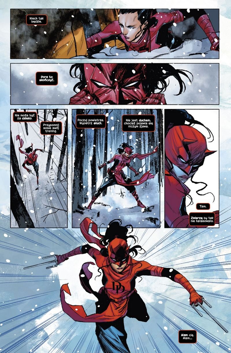 Diabelski rządy mają silny posmak Wojny domowej. Historia Millara była jednak bratobójczą wojną, w której było więcej widowiska niż głębszej treści. Zdarsky co prawda nie unika super-mordobicia, ale kładzie równie silny nacisk na osobiste wątki. Matt i Elektra otrzymują potrzebny dla rozwinięcia ich historii czas. Cieszy mnie też mądre rozmieszczenie w tym pozostałych herosów ulicy. I to bez ucinania pozostałych składowych historii, którą tym razem niemal w pełni prowadzi Kingpin.