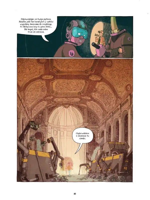 Założenia miejskich rysunków Vandepitte’a biją na głowę setki innych saj-fajowych metropolii. Zacznijmy od pereł architektury. Big Ben, Partenon i cała reszta budowlanego dziedzictwa ludzkości została wydobyta dosłownie z dna i umieszczona pośród futurystycznych drapaczy chmur. Największą zasługą autora jest jednak sama akcja. Nie unika on krwawej jatki, ale jest ona jedynie elementem obok wielu składowych tego świata. Vandepitte przypomina mi miejscami samego Moebiusa. To sama maestria przestrzeni i śmiałość w łączeniu różnych światów. Choć w bardziej kreskówkowym stylu, bez wizjonerskiego artyzmu, jak u legendarnego francuskiego twórcy.