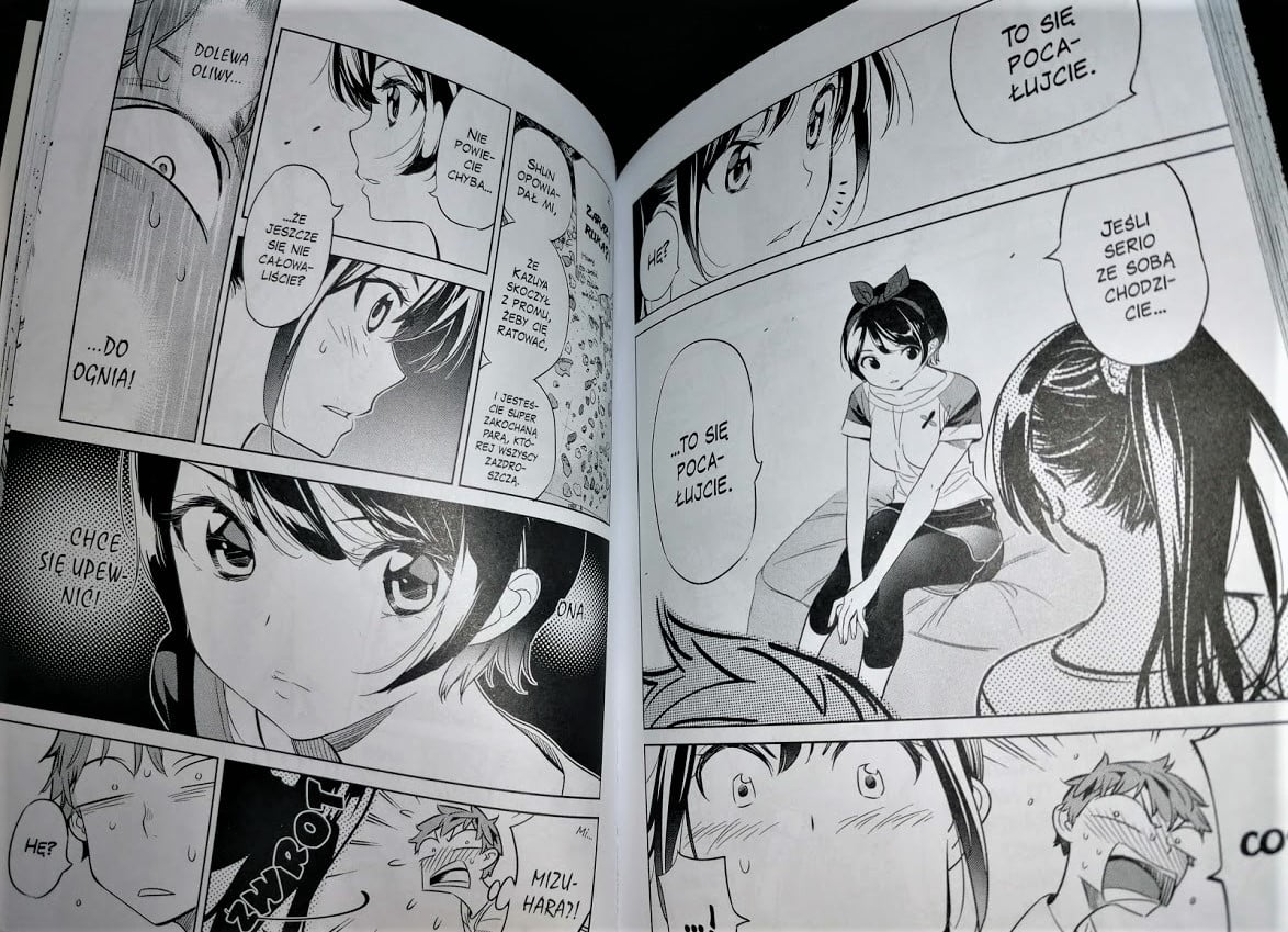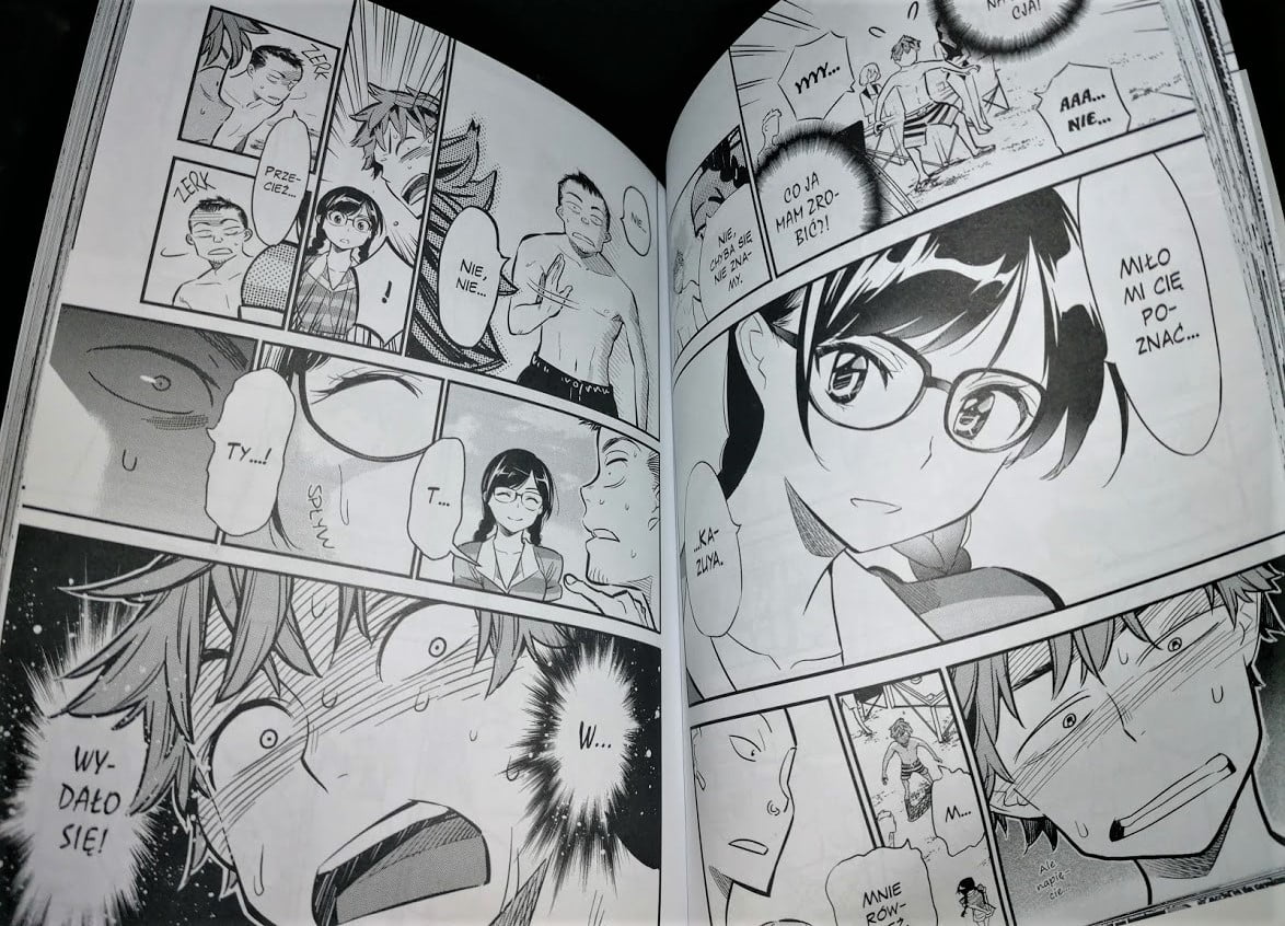Omawiane przeze mnie tym razem dwa tomy Dziewczyny do wynajęcia można podzielić na trzy kluczowe wydarzenia: wypad paczki znajomych Kazuyi na wakacje, rodzinny weekend w gorących źródłach oraz pierwszy kontakt udawanego duetu z inną dziewczyną z wypożyczalni. Odpoczynek na plaży podczas przerwy od uczelni miał się obyć bez kolejnych stresujących sytuacji dla Kazuyi, ponieważ ten nie wynajmował ponownie Chizuru, a jej nieobecność wytłumaczył kolejnym kłamstwem. Jednak jako że mamy do czynienia z komedią licznych przypadków, dwójka ta wpada na siebie na plaży i ponownie przystępuje do grania swoich ról. Tym razem jednak chcą wykorzystać sytuację i zerwać ze sobą. Sprawy przybierają jednak nieoczekiwany obrót – zdarzył się pewien wypadek – na czym na pewno zyska prawdziwa relacja tej dwójki. Sama Chizuru dowiaduje się też sporo o Kazuyi, między innymi o jego trudnościach z dziewczynami i łatwowierności, przez co naprawdę łatwo go zranić.