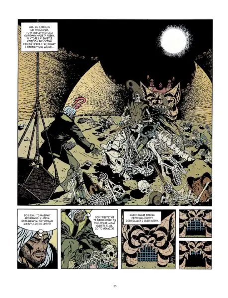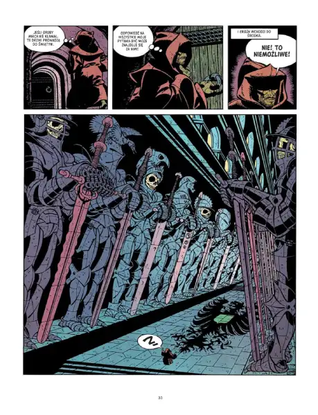 Druga część albumu to mocno surrealistyczna, a zarazem przepełniona grozą podróż i walka bohatera o życie. We Władca ciemności naprzeciwko Erguna stają postaci rodem z koszmarów. Diabły, mroczni kapłani, nie wspominając o katedrze rodem z inferna i rycerzach w czerwonym dwupłatowcu. Budzi to moje skojarzenia z Berserkierm, choć Comes kładzie akcenty w innych punktach. I sam zastanawiam się, do jakiej szuflady wrzucić tę opowieść? Horror SF? Weird fiction? A może najlepiej nie kategoryzować i cieszyć się znakomitą lekturą?