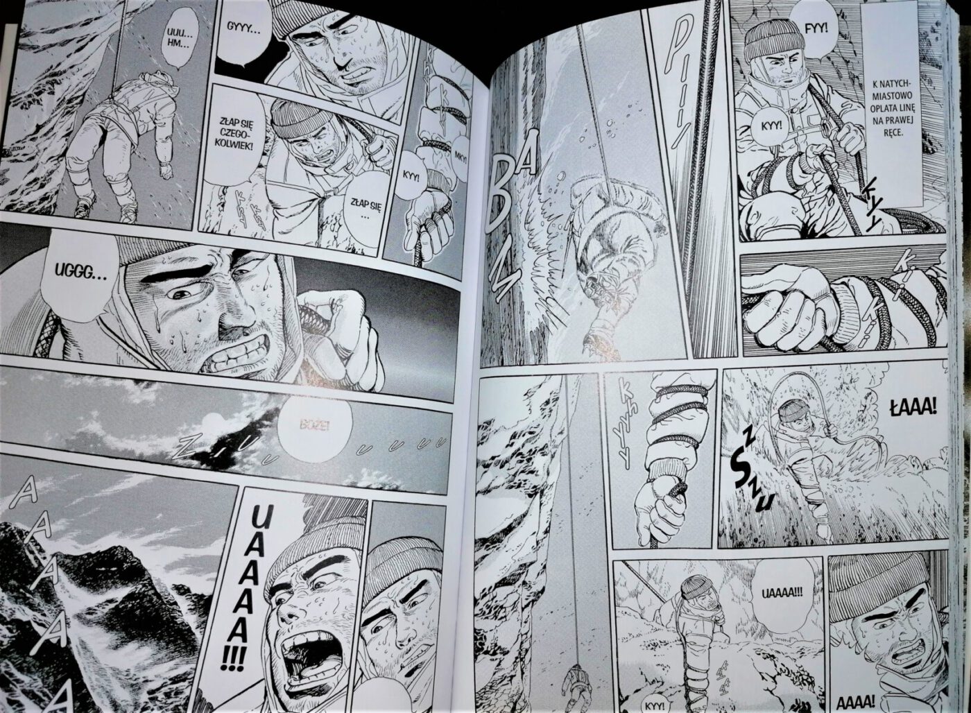 Jeśli zaś chodzi o epizodyczne historie, to te wypadają naprawdę dobrze, choć oczywiście nie jest równo. Wszystkie jednak posiadają silny ładunek emocjonalny, przez co siedzą w głowie jeszcze chwilę po przeczytaniu. K2 na przykład opowiada o synu potentata naftowego, który utknął w trudno dostępnym miejscu (w pęknięciu pionowej ściany) zwykle omijanym przez wspinaczy. Widzimy tam miedzy innymi, jak K ratuje poszkodowanego przez zamarznięciem, a także daje mu szansę na uratowanie kończyn przed amputacją. Kolejna ciekawą historią jest Everest, gdzie K udaje się w niezdobyte jeszcze miejsce na zboczu tylko po to, aby sprowadzić ma dół zwłoki. Tam K dokonuje nawet czynu wręcz nadludzkiego – to było coś. Mniej podobała mi się na przykład historia Pumori. Tam bohater zostaje zmuszony do wspinaczki na górę, gdzie rozbił się samolot.