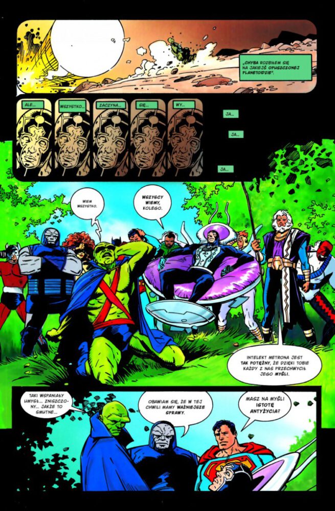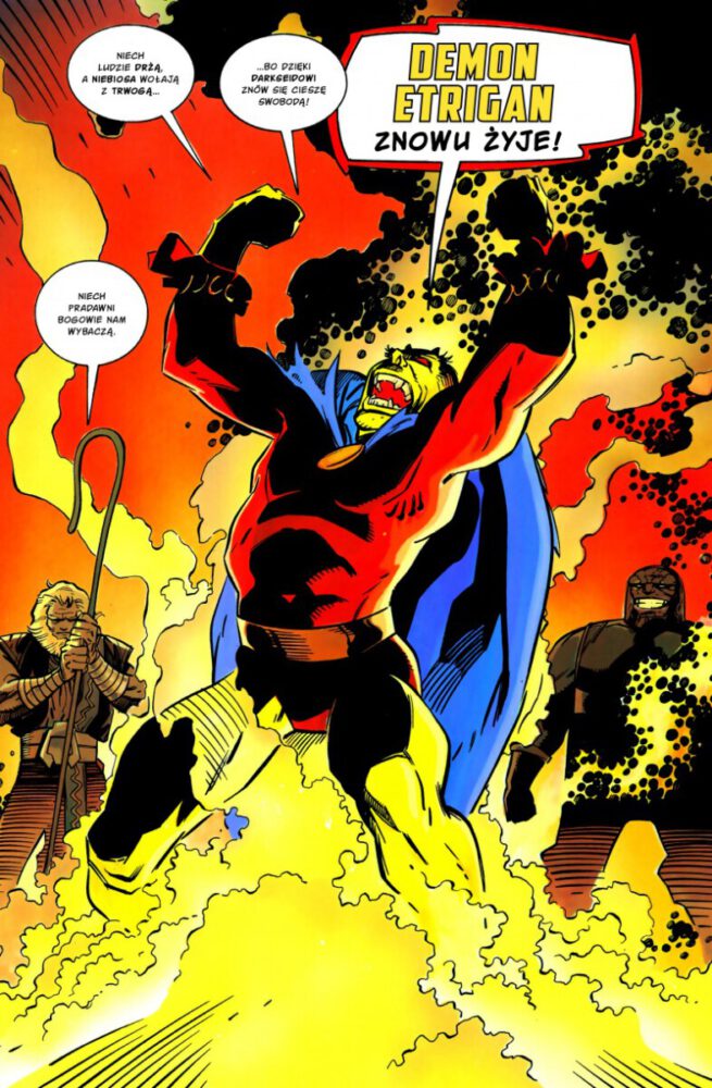 Darkseid czasem porównywany jest do Thanosa. Kwadratowa gęba, budowa gdańskiej szafy i mordercze zapędy. Obaj poniekąd też kochają nawet to samo. O ile jednak Szalony Tytan „simpuje” za ucieleśnioną Panią Śmiercią, o tyle Darkesid bardziej abstrakcyjnie wzdycha za potęgą Antyżycia. W historii Starlina nie jest ono jednak konceptem, a świadomą istotą. Kimś, kto zagraża wszechrzeczy i nawet Pan Apokolips zaczyna zdawać sobie sprawę z niebezpieczeństwa, co skłania go do sojuszu ze znienawidzoną Nową Genezą i ziemskimi herosami. Kosmiczna odyseja to nie kolejny taśmowy crossover z superludźmi stawiającymi czoła ogromnemu zagrożeniu. A przynajmniej nie tylko.