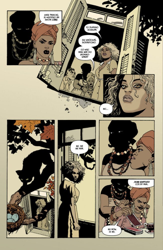 W twórczości duetu Azzarello/Risso cenię sobie to, że potrafią oni ująć esencję konkretnego miejsca i jego mieszkańców. Szerszy przekrój tego zjawiska lepiej widoczny był w 100 nabojach, ale kolejne tomy tej serii również prezentują niemałą paletę barw USA tamtej epoki. Księżycówka tom 3: Rue le Jour to nieco popkulturowy obraz Luizjany, ale przy tym piekielnie klimatyczny. Voodoo i lokalny folklor pasują do wilkołactwa głównego bohatera i przy okazji powiększają świat o kolejne aspekty nadprzyrodzone. Przy czym wszystko trzymane jest w ryzach noirowego urban fantasy, a małe wypady na terytoria Bayou dodają tylko smaczku do dotąd dominujących miejskich klimatów.