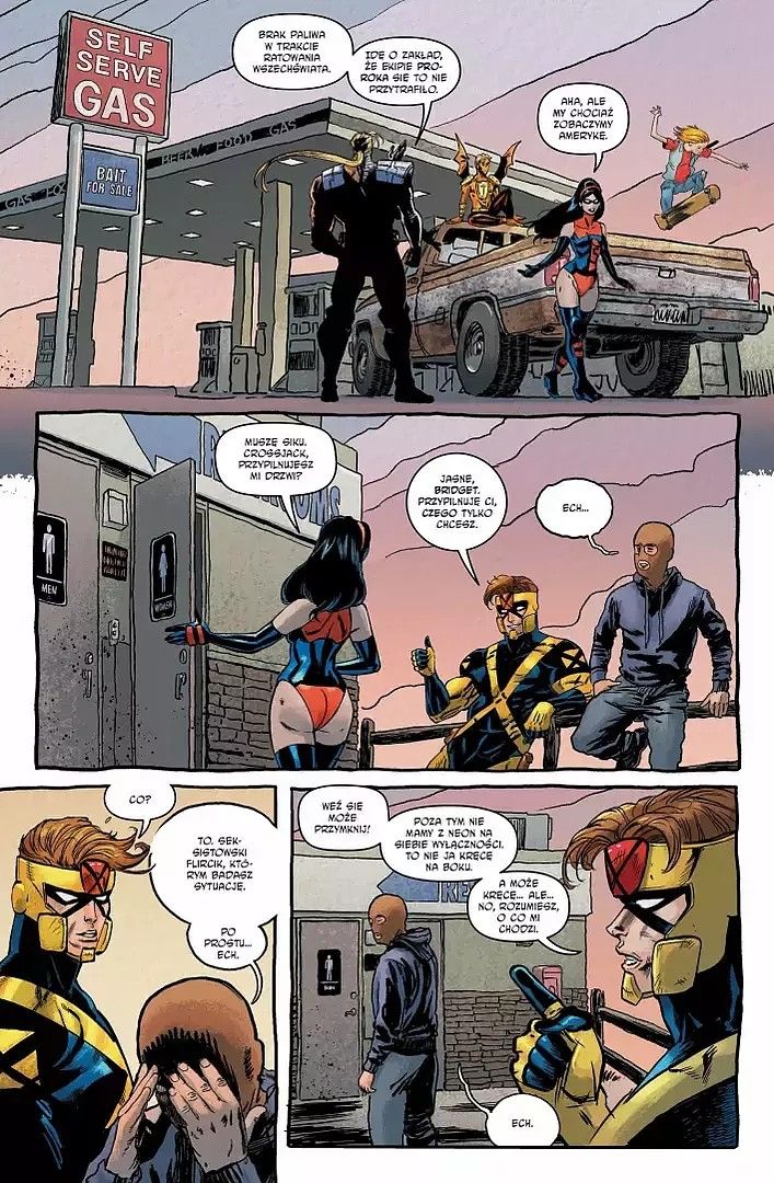 Tim Seeley przenosi peleryny i maski na prowincję USA, ze wszystkimi jej problemami. Interesujący jest tu główny kontekst niechęci lokalsów do Jacka. Fermington dzięki sławie Crossjacka miało stać się swoistą mekką i kolejnym etapem rozwoju superbohaterskiej społeczności. Tak się nie stało i mieścinę spotkał los wielu innych lokacji z Pasa Rdzy. Atmosferę apatii przerywa jego powrót i wydarzenia z nim związane, choć to dopiero początek jego odkupienia. Ducha prowincji świetnie oddają rysunki Tony’ego Fleecsa, choć oparte w sporej mierze na projektach scenarzysty.