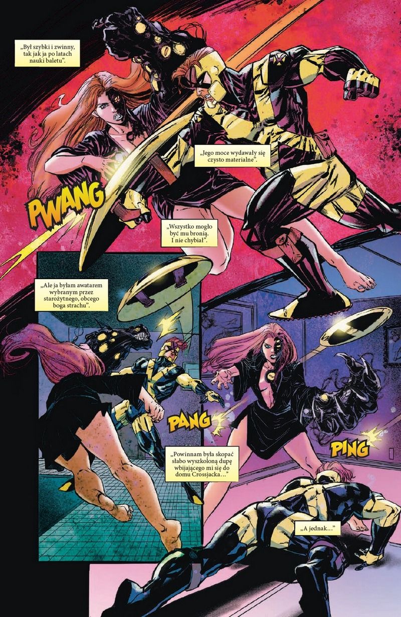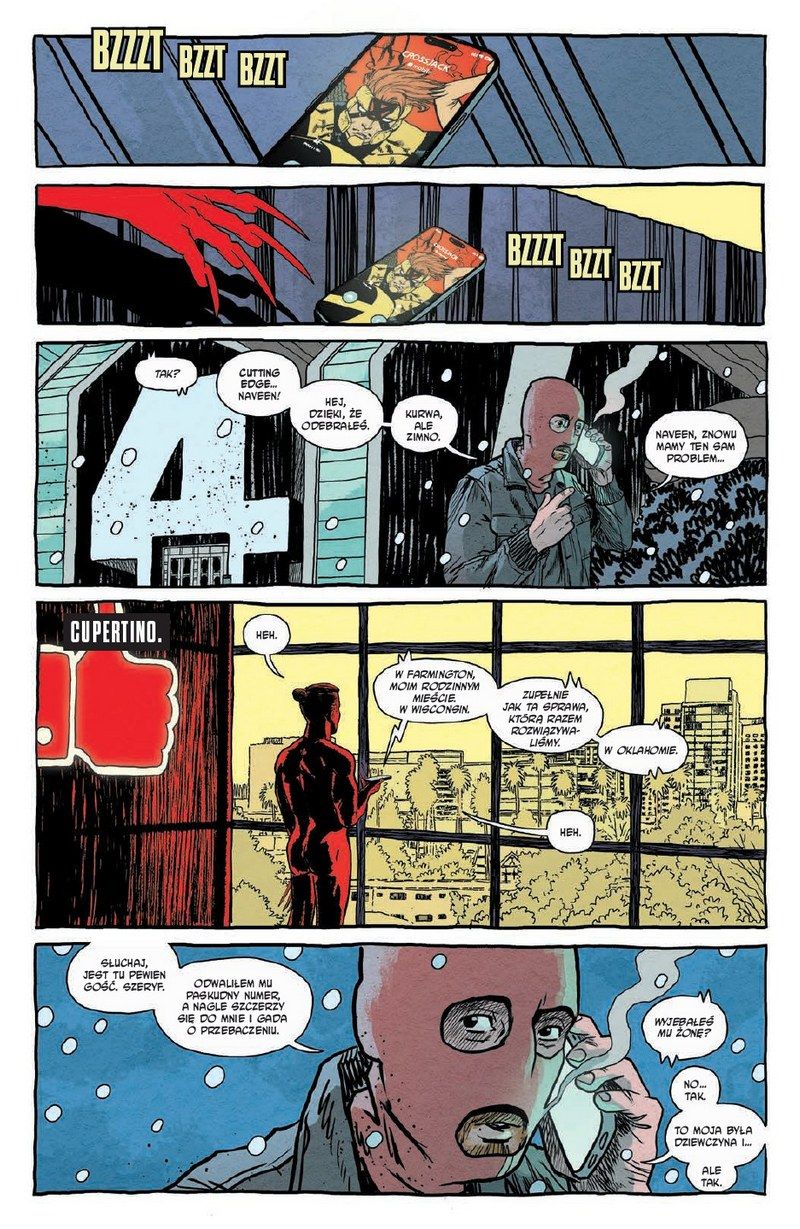 Sacrum miesza się tu z profanum. Herosi w trykotach mają sporo miejsca, ale Tony Fleecs daje więcej przestrzeni tym bardziej kameralnym wydarzeniom. Tym bardziej pojawienie się Bezimiennej Hordy budzi niepokój. Klimaty radykalno-sekciarskie i przeciętni obywatele niemal heilujący przed nową przywódczynią, to wyzwanie zdające się przerastać zdolności byłego herosa. Na szczęście Fleecs nie ma ambicji crossoverowych i małomiasteczkowa nuta jest tu autentyczna, podkręcona może nieco superbohaterskim echem. Tu warto wspomnieć jeszcze o uroczym psim seniorze należącym do Jacka, wyjątkowym nie tylko ze względu na swój kudłaty urok.