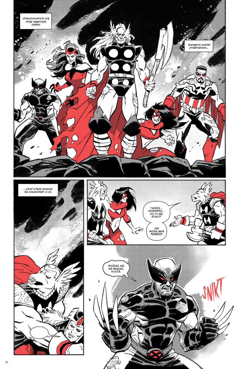 Marvel znacznie lepiej wykorzystał motyw zombie niż konkurencja. DCeased to cykl z potencjałem, ale spóźniony i nie tak dobrze rozgrywający swych bohaterów jak Marvel Zombies. I bądźmy szczerzy. Tom Taylor to może i pomysłowy twórca, ale gdzie mu tam w tematyce zombie do Roberta Kirkmana. Marvel Zombies: Czerń, biel i krew to duchowa kontynuacja wizji autora Żywych trupów, ale idąca własną ścieżką, prezentująca inne podejście do głównego, nieżywego zagadnienia.