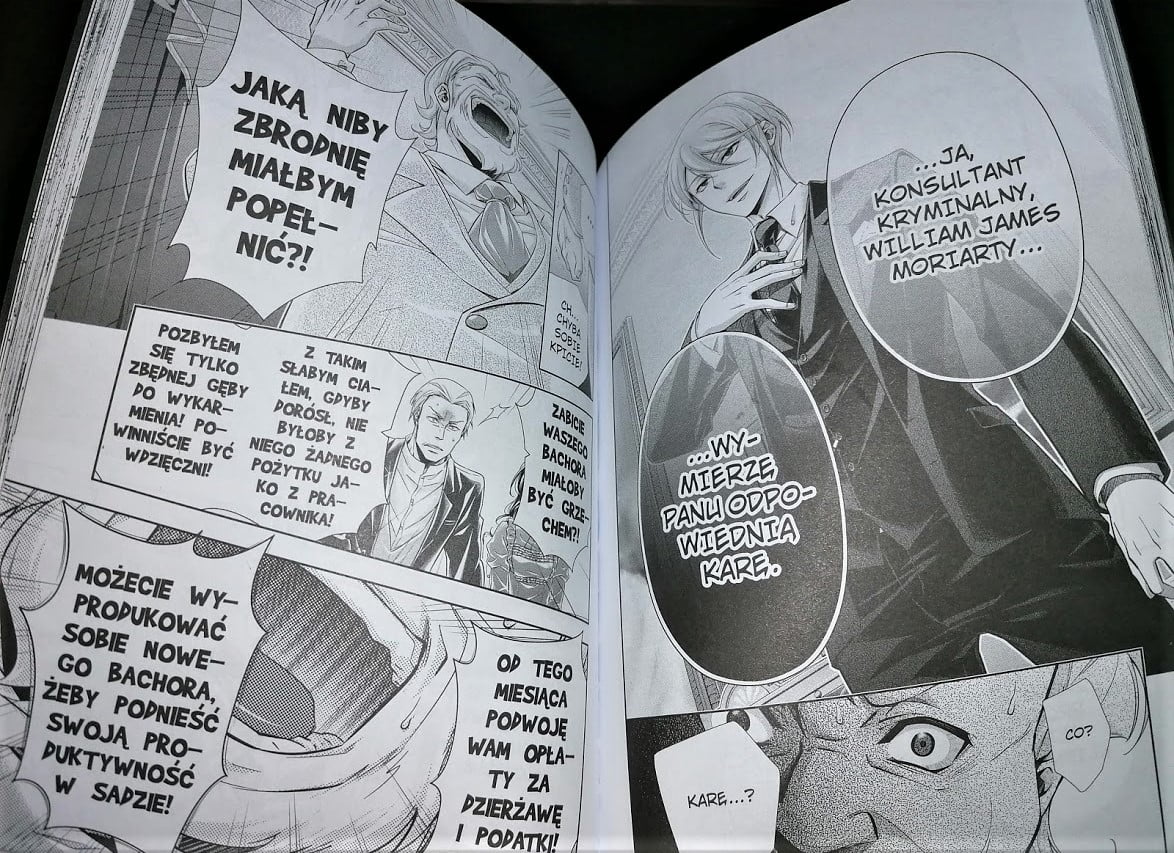 Napoleon zbrodni, jak określał profesora Jamesa Moriarty sam Holmes, w powieściach i opowiadania Arthura Connana Doyla nie był aż tak istotną personą, a jego geneza zarysowana była bardzo szczątkowo. Mimo wszystko na przestrzeni lat postać genialnego profesora matematyki wyrosła na tego, który najmocniej zaszedł za skórę Holmesowi – w końcu to on prawie doprowadził do śmierci detektywa. Moriarty dla fanów twórczości Doyla stał się z czasem niezwykle interesującą postacią, więc poznanie go bliżej byłoby naprawdę kuszącą wizją. Właśnie z taką myślą do tworzenia mangi podszedł duet Ryosuke Takeuchi (historia) oraz Hikaru Miyoshi (rysunki), który od 2016 roku dostarcza czytelnikom historię Jamesa Moriarty’ego. Od niedawna za sprawą wydawnictwa Waneko możemy poznać ją również w Polsce.