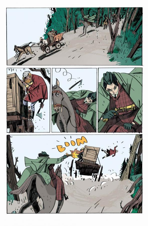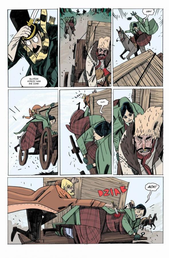 O kresce Warwicka Johnsona-Cadwella można napisać wiele, ale na pewno nie to, że jest gładka i łatwa dla oka. Pierwsze spotkanie z jego pracami zrobiło na mnie wrażenie i obecnie niewiele się zmieniło. Chyba rozumiem, czemu Mignola sam nie wziął się za rysunki. Ta przedziwna i humorystyczna lekkość fabuły gryzłaby się z wieloma aspektami jego rysunku, a z kolei Johnson-Cadwell wspaniale czuje się w horrorze z przymrużeniem oka. Miejscami może jest zbyt karykaturalnie, ale rysownik odpokutowuje to całokształtem kreowanego klimatu.