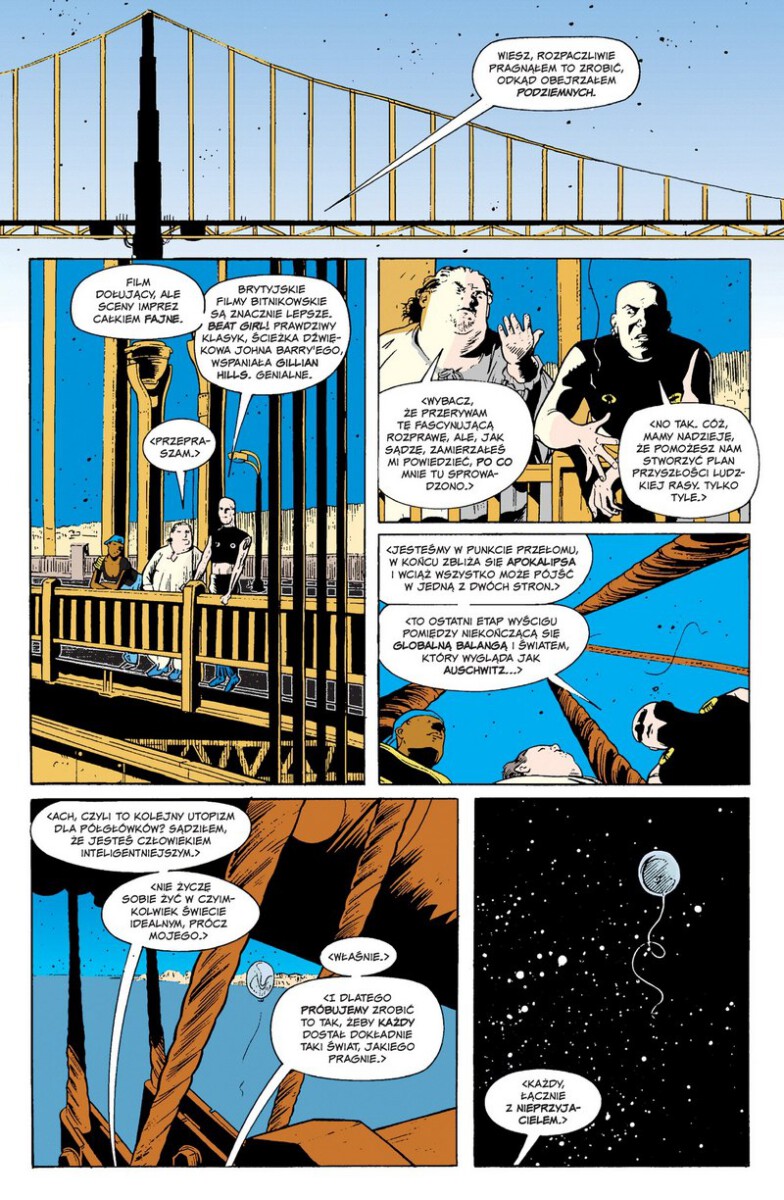 Ciężko jest ocenić tak skomplikowaną serię jak Niewidzialni po jednym albumie. Morrison to człowiek nie bez powodu nazywany Szalonym Szkotem, a tytuł ten doskonale to pokazuje. Nieskrępowany jakimkolwiek uniwersum popuszcza wodze fantazji i czasem ma to swoje minusy, lecz znacznie częściej wychodzi na korzyść czytelnika. Niewidzialni – Księga pierwsza to nie komiks na początek przygody z jego bibliografią. To tak jakby na pierwsze auto, tuż po kursie prawa jazdy, wybrać sportowe, wielkosilnikowe cudo. Ominąć je jednak byłoby hańbą i czym prędzej sięgnąłbym po lżejsze dzieła, jeżeli można użyć takiego słowa wobec komiksów Morrisona i po nich zabrałbym się za Niewidzialnych. Dobrze się stało, że Egmont postanowił wydać ten tytuł, bo to nie tylko istotny komiks cenionego twórcy, ale i wspomnienie czasów, gdy DC pod marką Vertigo potrafiło wydawać coś poważniejszego bez Batmana.