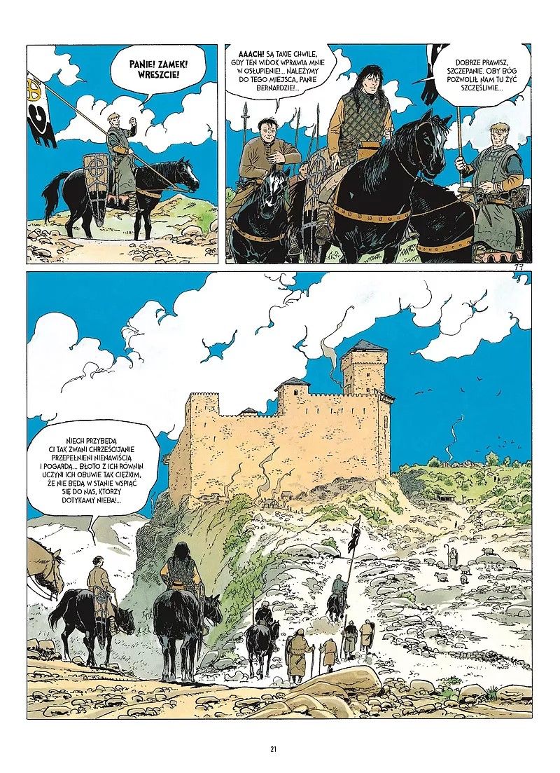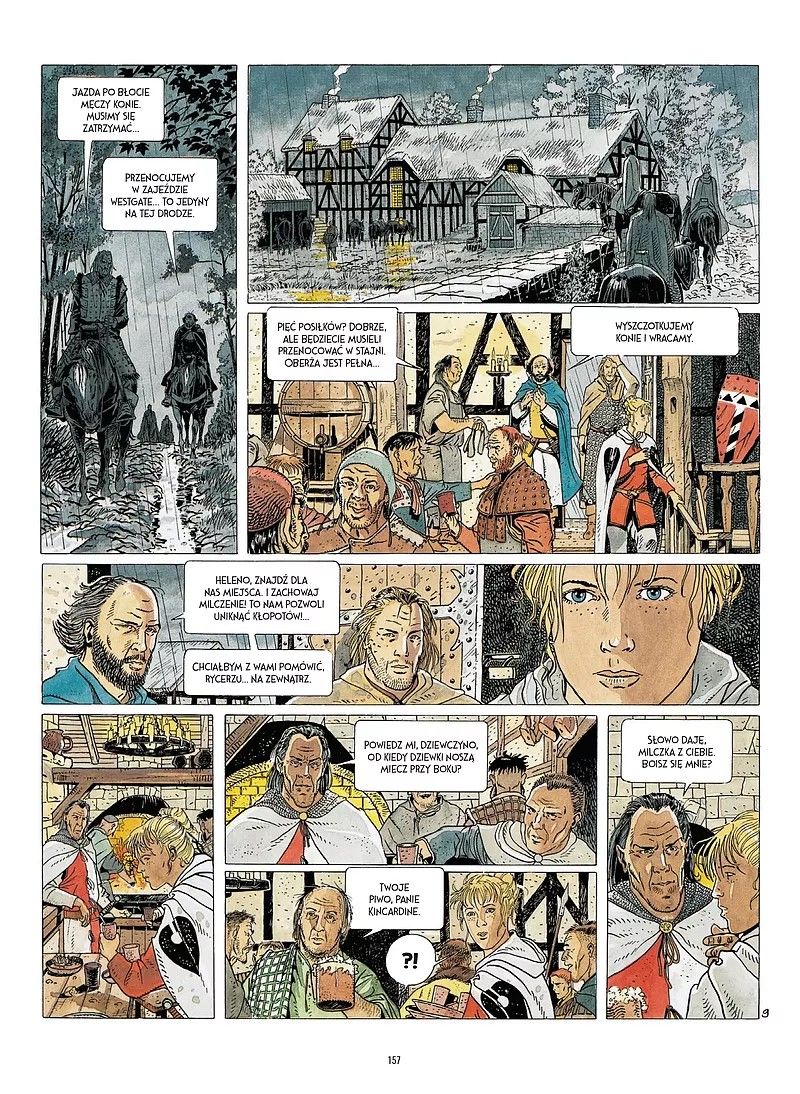 Wiek XIII nie był czasem przychylnym dla pań. Będąc atrakcyjną młodą kobietą, Helena jest narażona na wrogość nie tylko ze strony obcych, ale i bliskich. Jej wątek jest tu najciekawszy, a Jarbinet niejako przy okazji ukazuje wiele aspektów jej czasów. Nie są one wyłącznie ponure, ale dla współczesnego człowieka to, co znajdzie w albumie Pamięć popiołów tom 1, miejscami może szokować. Jarbinet to nie reżyser hitowego blockbustera, stawiający widowisko ponad fakty. Tu miecze są ostre, ogień pali heretyków, a kobieta w oczach Kościoła jest na dnie drabiny społecznej.