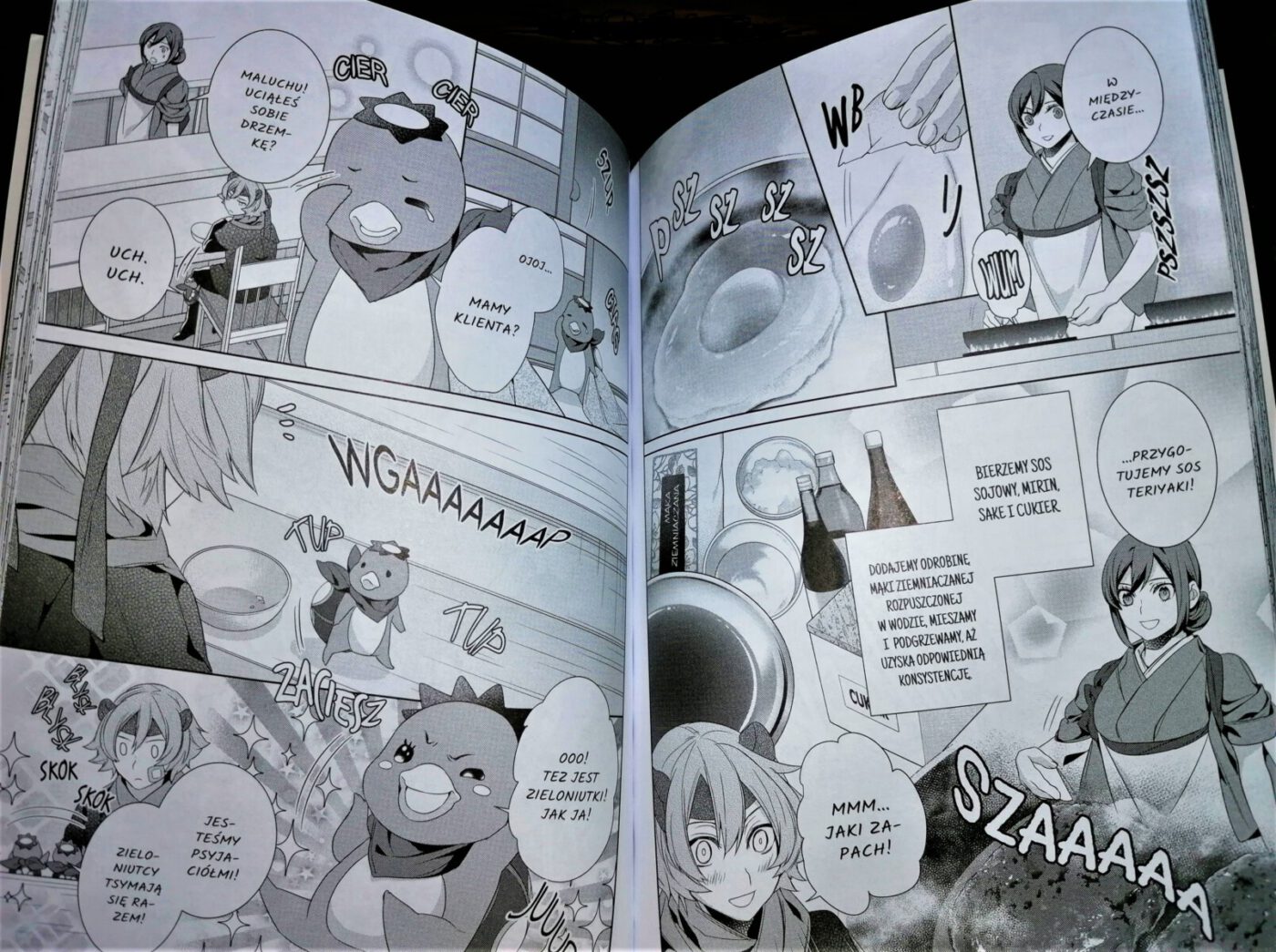 Tak też manga Pensjonat w zaświatach szybko przeistacza się w historię z silnym akcentem kulinarnym. Nie są to jeszcze Kulinarne Pojedynki, ale na przestrzeni omawianych czterech tomów możemy poznać kilka prostych, acz niezwykle apetycznych potraw. Aoi z czasem postanawia bowiem odtworzyć swoją restaurację, która obok tej renomowanej i ekskluzywnej Niebiańskiej Gospody ma serwować prostsze potrawy ze Świata Widzialnego. Oczywiście nie obywa się bez problemów, bo nie wszyscy są zadowoleni, że człowiek chce otworzyć swój lokal w Zaświatach. A poza tym samo prowadzenie restauracji to masa wysiłku i wyzwań. Całe szczęście, że mangaka odpowiedzialny za ten tytuł nie zapomniał w tym miejscu o Zaświatach i całej otoczne z demonami i tak dalej. W mandze cały czas możemy spotkać coraz to ciekawsze istoty (na przykład rodzeństwo demonów-pająków, którzy w przeszłości poznali dziadka Aoi), a te często potem pomagają dziewczynie, gdy ta już w jakiś sposób rozwiązała ich problemy. Fajnie też poznaje się pośrednio postać dziadka, Shiro, który mimo że wielu zaszedł za skórę, to zrobił też sporo dobrego.