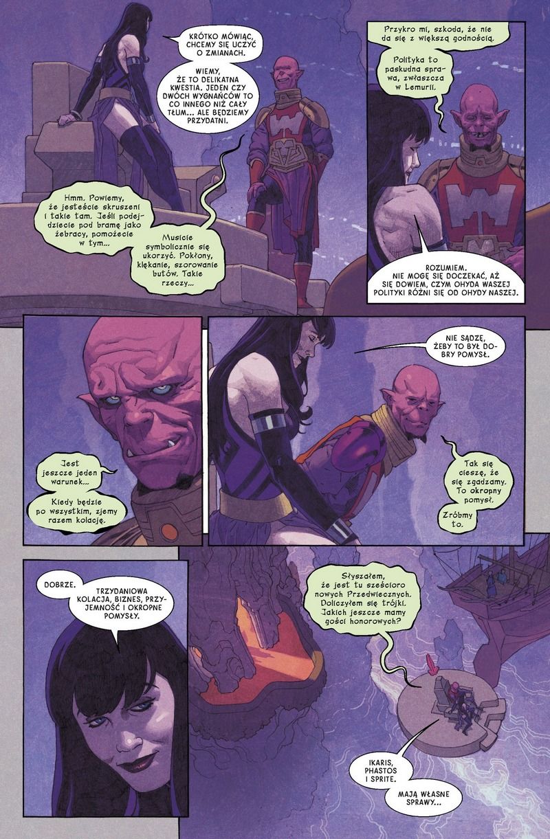 Przedwieczni to nie tylko kolejny etap rozwoju mitycznych bohaterów, ale element spajający kilka istotnych kwestii czasu Marvel Fresh. Mamy tu odwołania do Celestian i ich udziału w stworzeniu życia na Ziemi oraz połączenie z wątkiem prehistorycznych Avengers. I wreszcie kwestia mutantów, którzy w ostatnim okresie wzrośli znacząco w siłę. To przede wszystkim jednak kawał dobrej opowieści. Gillen ma rękę do mitologicznej narracji, potrafiąc doszlifować ją tak, by nie trąciła kurzem i naftaliną. Już niebawem czeka nas Sądny dzień i jeśli historia potoczy się podobnie, otrzymamy coś znacznie lepszego niż szablonowy crossover.