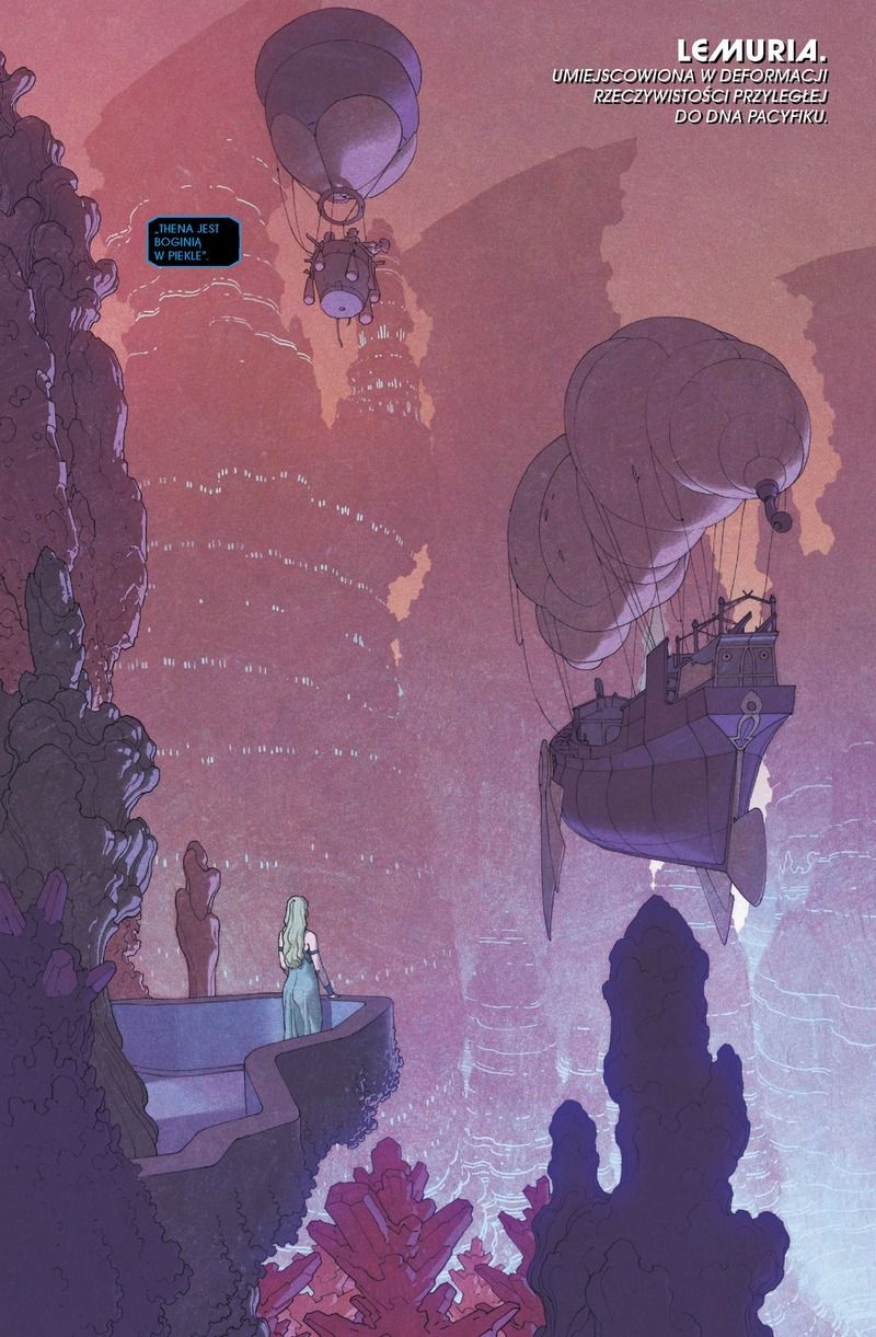 Narratorem historii jest wymieniona wyżej Maszyna. Byt posiadający wszelkie cechy SI, której nieco pomieszało się w głowie, choć nie przejawia morderczych zapędów. Przedstawia ona też szczegółową charakterystykę tytułowej społeczności. Historyczną, społeczną i filozoficzną. Gillenowi jakimś cudem udaje się to upakować w ciekawej formie i przypomina to nieco twórczość Jonathana Hickmana. A skoro już o tym twórcy mowa – finał niniejszego komiksu prowadzi wprost do konfrontacji z X-Men i Avengers. Ale nie obawiajcie się banalnej, bratobójczej bitwy. Gillen to autor nie bez powodu doceniony przez samego Alana Moore’a.