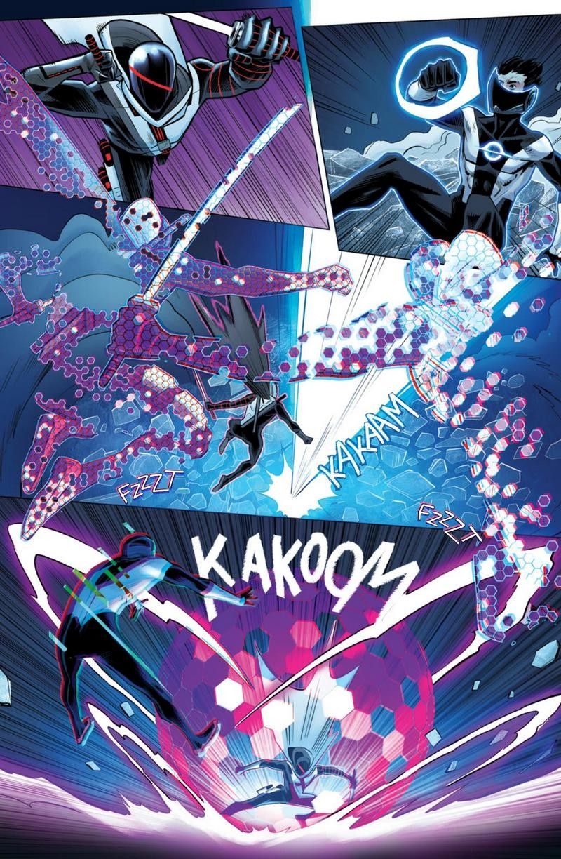 Na początek mały spoiler. Nathan Burnett w wyniku gwałtownych wydarzeń oddaje tytuł swemu przyjacielowi Marshallowi. „Oddaje” to łagodne słowo, bo poobijany Burnett zapada w śpiączkę, gdy moc Radiant Blacka przechodzi na kolejną osobę. A Marshall, jak to dobry kumple, szuka zemsty, co zapowiada radiantową wojenkę. Na szczęście komiks ten to dzieło ambitniejsze niż mainstreamowe heroizmy i nie musicie się obawiać kolejnej wojny domowej. Higgins stawia na show, ale nie aż tak rozdmuchane, koncentrując sporo sił na wątkach mniej superbohaterskich.