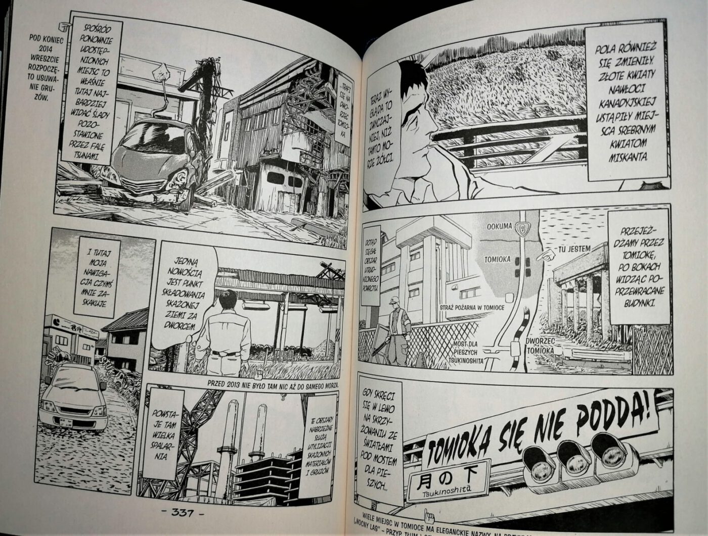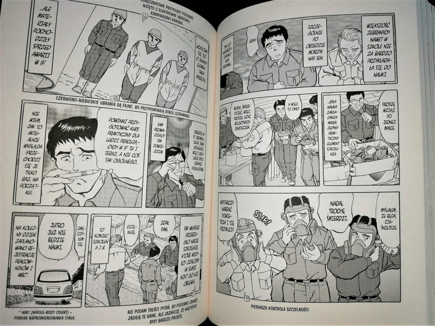 Manga Reaktor 1F to prawdziwa skarbnica informacji o pierwszej elektrowni w Fukushimie. Oprócz szczegółowych opisów panujących tu zasad podczas usuwania skutków awarii, dobrze poznajemy też cały obszar 1F. Autor zadbał nawet o odpowiednie mapy. Informacji jest tu cała masa. Lektura przez to do najlżejszych nie należy i polecam dobrze ją dawkować, bo po kilku rozdziałach można niestety poczuć zmęczenie. Wiadomości też z czasem się powtarzają, więc zdecydowanie nie jest to lektura na jedno czy dwa posiedzenie. Ponad 500 stron zdaje mi się tęż trochę zbyt obszerne na ten temat, ale oczywiście wtedy nie udałoby się upchnąć tu tylu szczegółów.