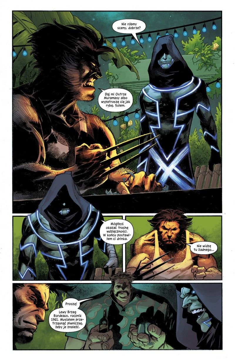 Podczas eventu X-Mieczy Logan skrzyżował ostrza z niejakim Solemem z Arrako. Ciekawym bohaterem, aczkolwiek nieco przejaskrawionym, choć w ten dobry sposób. Cała konkurencja dotyczy legendarnych mieczy Muramasy, a w tle majaczą cienie Dłoni. Do tego dostajemy debiut pirata-mutanta, który w przyszłości może mieć jeszcze coś do pokazania. Benjamin Percy stawia tu na mieszaninę akcji i intrygi, nie zapominając, że Era Krakoi wciąż trwa i stanowi istotny element działań Logana.
