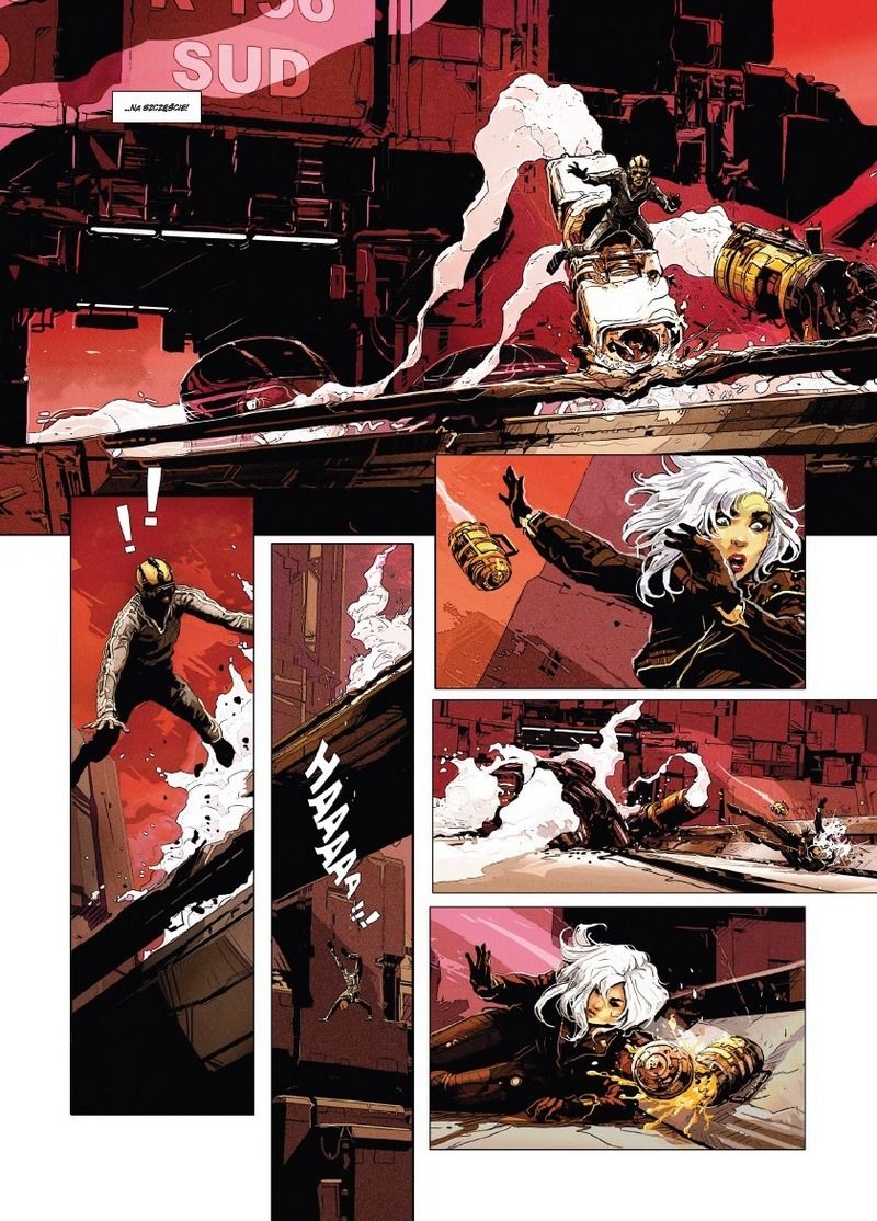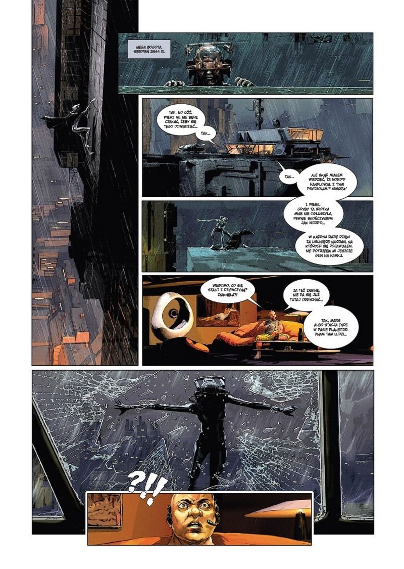 Klimat tego komiksu tworzą rysunki. Sfery, jak już wspomniałem, mają wyraźny cyberpunkowy sznyt, ale wykraczają też poza ramy gatunku. Od ulicznego brudu i degeneracji, po śmiało rozwiniętą technologię na poziomie międzyplanetarnym. Do tego dochodzi wątek onirycznego narkotyku zwanego koralowym potem i betonowa wszechwładza dwóch korporacji. Styl Briona bliski jest realizmowi, co jeszcze mocniej podkreśla smrodek jego uniwersum. Nie jest to przyszłość, w której chcielibyście się znaleźć, ale taka, która doskonale prezentuje się w kadrach.