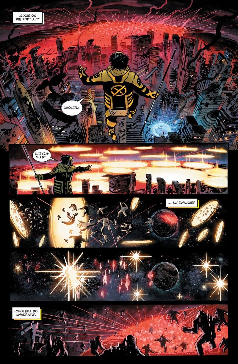 Ciekawe są okoliczności całej akcji. Mutanci są już samodzielną cywilizacją, a planeta Arrako, znana niegdyś jako Mars, to siedziba części ich społeczności. Wakanda z kolei z futurystycznego afrykańskiego państwa ewoluowała i stała się kosmicznym imperium. Wydarzenia tu ukazane nie mogły więc wydarzyć się bez udziału jej mieszkańców. I właśnie to sprawia, że trzeci tom Strażników Galaktyki Ewinga ma posmak crossoveru. Napięte wydarzenia mają gdzie się rozłożyć, choć odnoszę wrażenie, że gdyby wszystko jeszcze bardziej rozciągnąć, wtedy nie miałbym poczucia przesytu akcją i jej ogromem. Tym bardziej, że tytuł nawiązywał do historii mieszczącej się w trzech tomach, a jej reperkusje odczuwane były na różne sposoby w całym Marvelu.