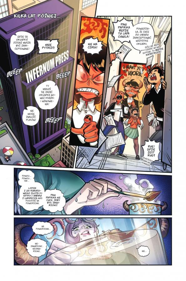 Poziom i powaga plansz Mirki Andolfo nie wykraczają poza to, co tworzy np. Skottie Young. O ile twórca Nienawidzę Baśniowa zdaje się mieć znacznie szersze horyzonty, o tyle autorka nie wychodzi poza swoją strefę komfortu. Ale przyznać muszę, że jest dobra w tym co robi. Erotyka nie jest wulgarną ekspozycją ciał, a ma w sobie pewne humorystyczne wysublimowanie. Ogół świata przedstawionego ma ręce i nogi, czy może raczej – skrzydła i rogi. Na dodatek całość utrzymana jest w rzeczywistości wedle wyobrażeń magazynu Cosmopolitan. No i sama Paprika i jej (e)rojenia. Nie nazwałbym tego może wybitnym pokazem sztuki komiksowej, ale na pewno bywa ciekawiej niż w superbohaterskich tasiemcach.
