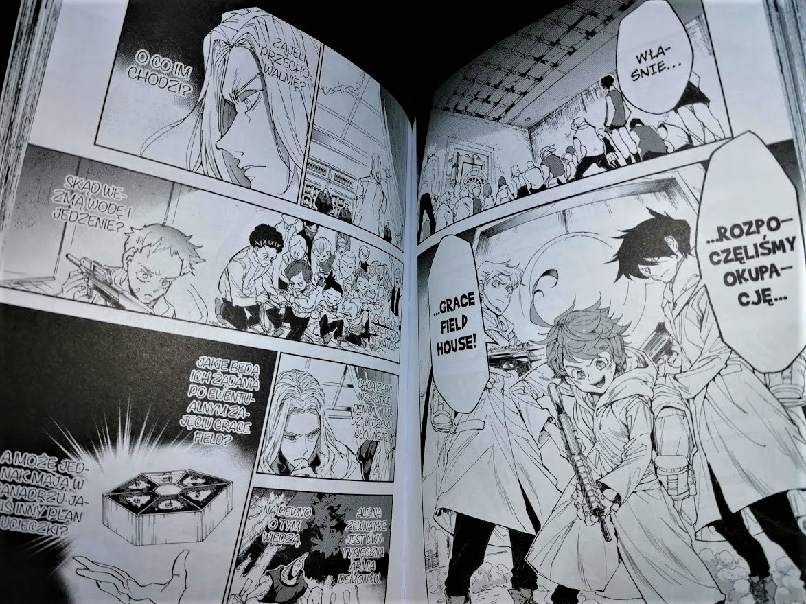 Finał historii odbywa jest jednak gdzie indziej, bo Grace Field – po dwóch latach wracają tam, Emma, Norman, Ray oraz reszta uciekinierów. Nie będę zdradzał, dlaczego się tam udają, bo to jednak za duże spoilery. Mimo to chciałby ocenić zakończenie całej historii. Cieszy fakt, że udało się zamknąć wszystkie wątki. Inna sprawą jest jednak to, jak ostatecznie poprowadzono historie do finału. No tu już tak różowo nie jest. Końcówka i run do końca nie dawał satysfakcji. Miałem wrażenie, że trochę się tu śpieszono oraz że w wielu momentach autor scenariusza poszedł na skróty. Praktycznie każdy problem cudownie się rozwiązywał i bez większych problemów udało się osiągnąć cel. To było zbyt proste i wypadło sztucznie – zwłaszcza gdy weźmiemy pod uwagę wcześniejsze wydarzenia z początku historii, miedzy innymi w Grace Field albo w Goldy Pond, które robiły wrażenie.