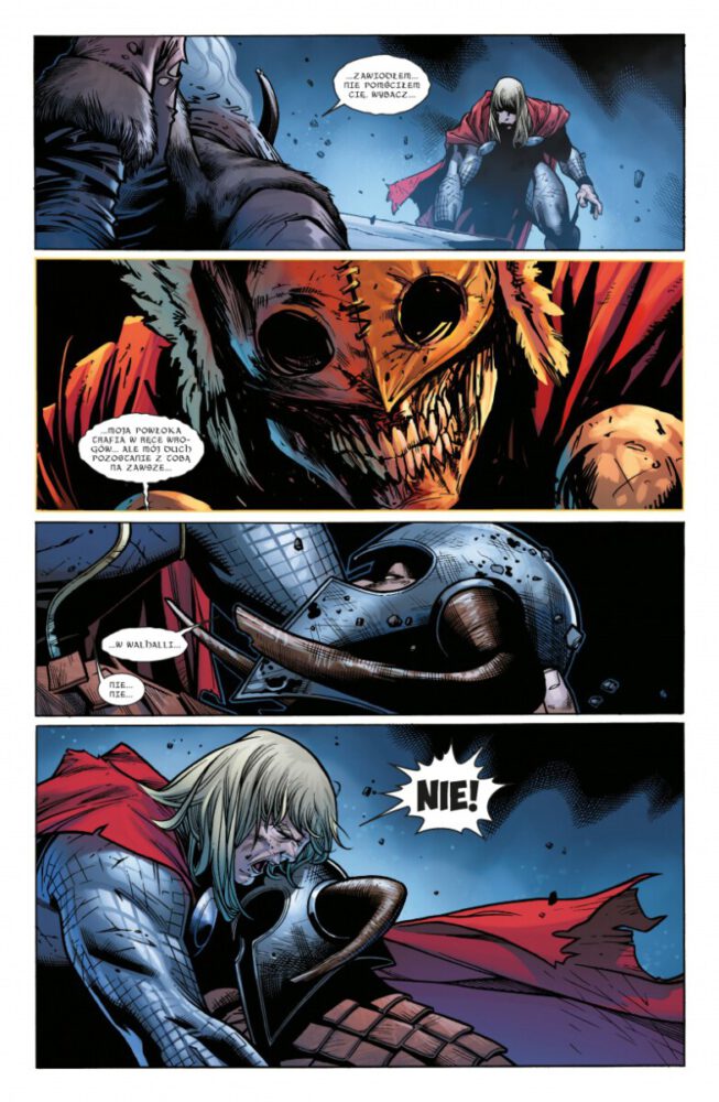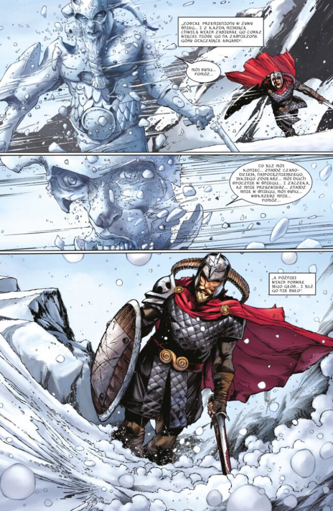 Straczynski miał sporo narzędzi do stworzenia solidnej opowieści i z wielu z nich skorzystał, ale też wiele dodał od siebie. Mamy klasykę thorowych historii – spiski Lokiego, Donalda Blake’a, Jane Foster i Wojów Trzech. Ale to sprowadzenie Asgardu nad Oklahomę i zderzenie tubylców z Asgardyczkami było podstawą pod to, co kilka lat później stworzył Jason Aaron. Straczynski nie pozbawił Asgardu boskości i majestatu, a pokazał jedynie, że nordyccy bogowie też mają słabości i dotykają one nawet najznamienitszych z nich, z kolei śmiertelnicy mogą być równie interesujący, nie tylko w roli wyznawców.