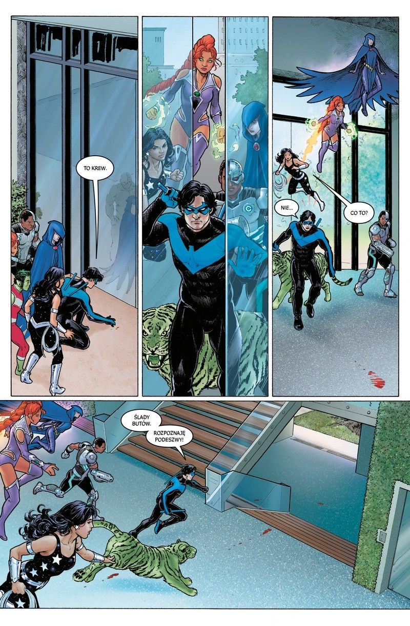 Liga Sprawiedliwości chwilowo znajduje się poza zasięgiem. A ktoś musi być obrońcą ludzkości, prawda? I tu z pomocą przychodzą niegdysiejsi podopieczni starszych herosów – Tytani. Nightwing i spółka przejmują stery i robią to efektownie i efektywnie. Nie jest to łatwe zadanie, bo na drodze staje im sama Amanda Waller, a ta niepozorna pani pokazała już wielokrotnie swoje rogi. Dochodzi jeszcze Brat Krew – jednostka makiaweliczna, jakże dobrze wpisująca się w czasy świętych celebrytów. A gdyby i tego było wam mało, jest i Peacemaker, w mocno serialowym stylu.
