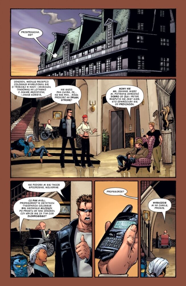 I tu czas na mały spoiler. W finale poprzedniego tomu dowiedzieliśmy się, że Magneto żyje, a w Ultimate X-Men tom 2, że ma się nawet całkiem dobrze. Co więcej, tworzy się przyjacielska więź między nim a Charlesem, który z każdą chwilą przestaje zwracać uwagę na problemy zespołu. Tu szacunek dla Millara za poświęcenie więcej niż minuty Colossusowi, który w 616 najczęściej jest tym silnym stalowym Ruskiem od rzucania Loganem na odległość. Autor przygląda się bliżej też Beastowi i Icemanowi. Obaj dostali swoje w starciu z Proteusem, choć ich rany mają inny wymiar i działania obu będą miały swoje konsekwencje dla grupy.