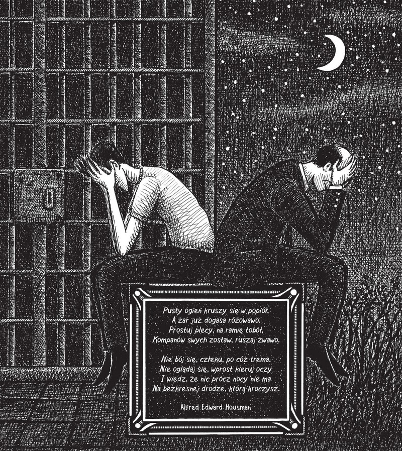 A skąd dzieło Dantego w więzieniu? Matt trafia do celi z dość szczególnym osobnikiem. Trudnym w obyciu, inteligentnym i złożonym. Genialnie łączącym się z jego fałszywą opowieścią o polowaniu. Nathan Leopold i Matt Rizzo różnią się diametralnie. Wychowany w dobrym i bogatym domu, naznaczony piętnem zwyrodniałego mordercy bufon kontra chłopak, który stracił przez swój występek nie tylko kilka lat życia. Słowo „kontra” jest tu kluczowe, bo ich znajomość to na początku tarcia i zgrzyty, przynajmniej do czasu odnalezienia wspólnej literackiej ścieżki. Dante jest tu jednym z wielu współprzewodników opowieści, po drodze pojawiają się jeszcze John Keats czy Platon. I to nie w formie wspominek czy kulturowych easter eggów, a elementów budujących fabułę.
