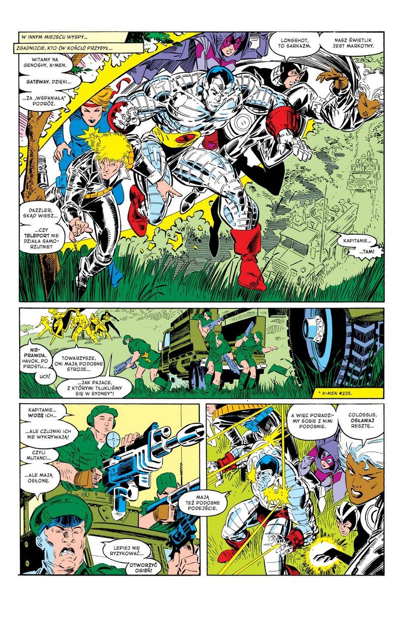 Chris Claremont przestaje bawić się tu w czysto superbohaterskie widowisko. Władze Genoshy to prawdziwa machina zła, a jednocześnie nieźle zorganizowane państwo, w każdym aspekcie tego słowa. Odpowiedni ludzie dbają, by lud demokratycznie popierał ich potworności. Obce państwa traktuje się jak uzurpatorów chcących im zaszkodzić, a najlepiej zabrać wolność. Traktowanie określonej grupy społecznej jak podludzi, fanatycy z eugenicznym zwichrowaniem u władzy, a zarazem techniczna sprawność w eliminacji niechcianych elementów. Czyż trochę to nie podśmierduje jak najbardziej realnymi reżimami, jak choćby III Rzesza? Możecie uważać, że przesadzam, ale analogie są oczywiste, choć Claremont nie jest łopatologicznie dosłowny.