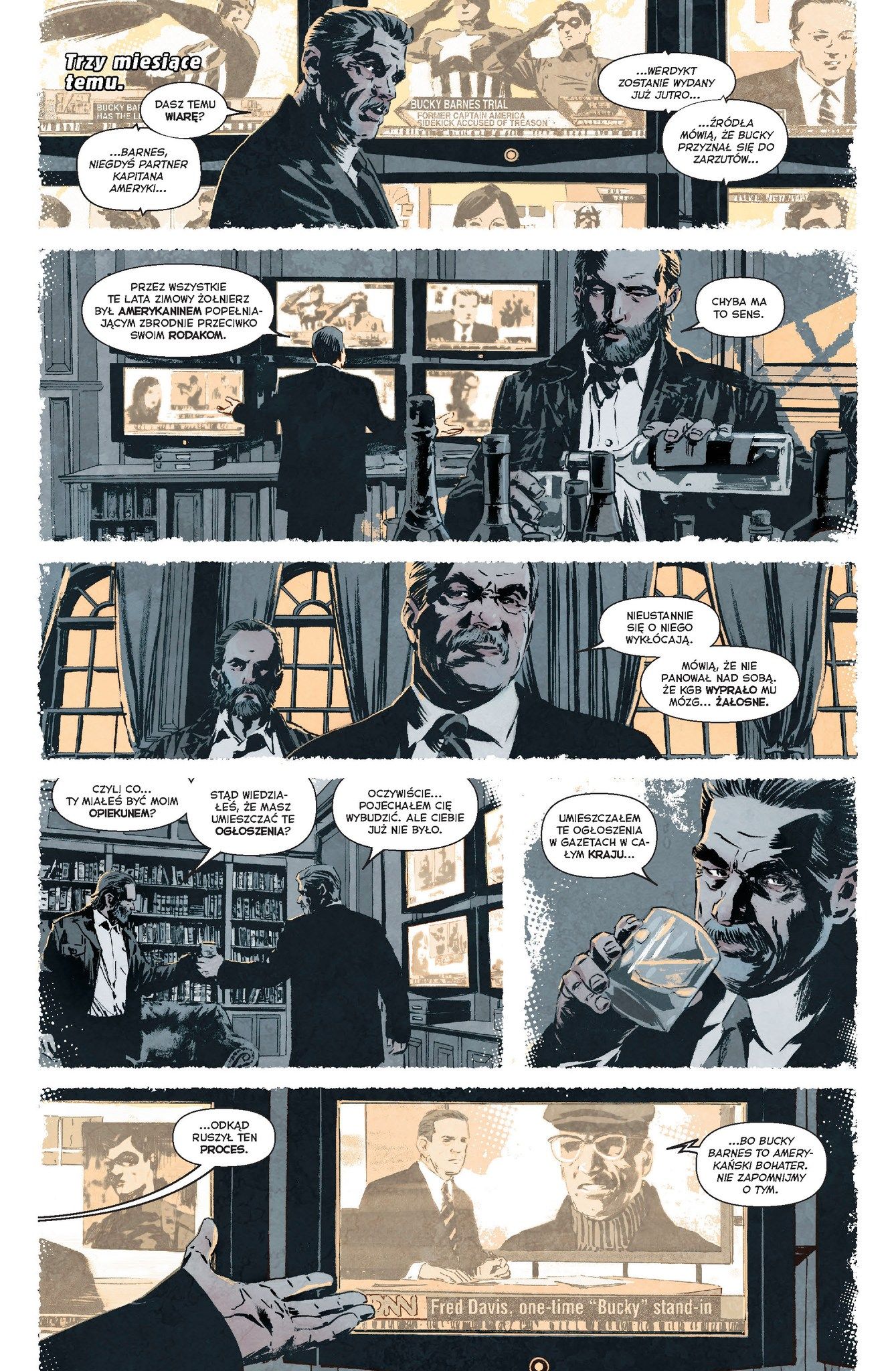 Bucky umiera po raz kolejny. I po raz kolejny na niby. Po wydarzeniach z historii Sam strach opinia publiczna i większość herosów myślą, że niegdysiejszy Zimowy Żołnierz wyzionął ducha. Na dodatek w pełni chwały swej kariery jako Kapitan Ameryka. Tymczasem pan Barnes ma się dobrze, ale za aprobatą Nicka Fury’ego sam decyduje się zachować ten fakt w tajemnicy. I szybko okazuje się, że nie bez powodu.