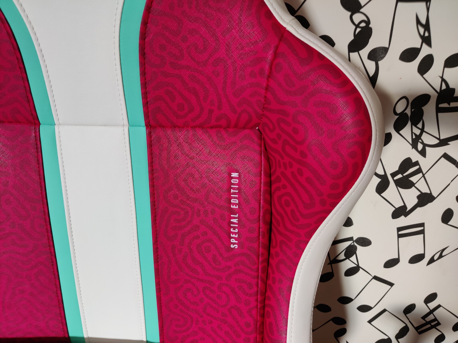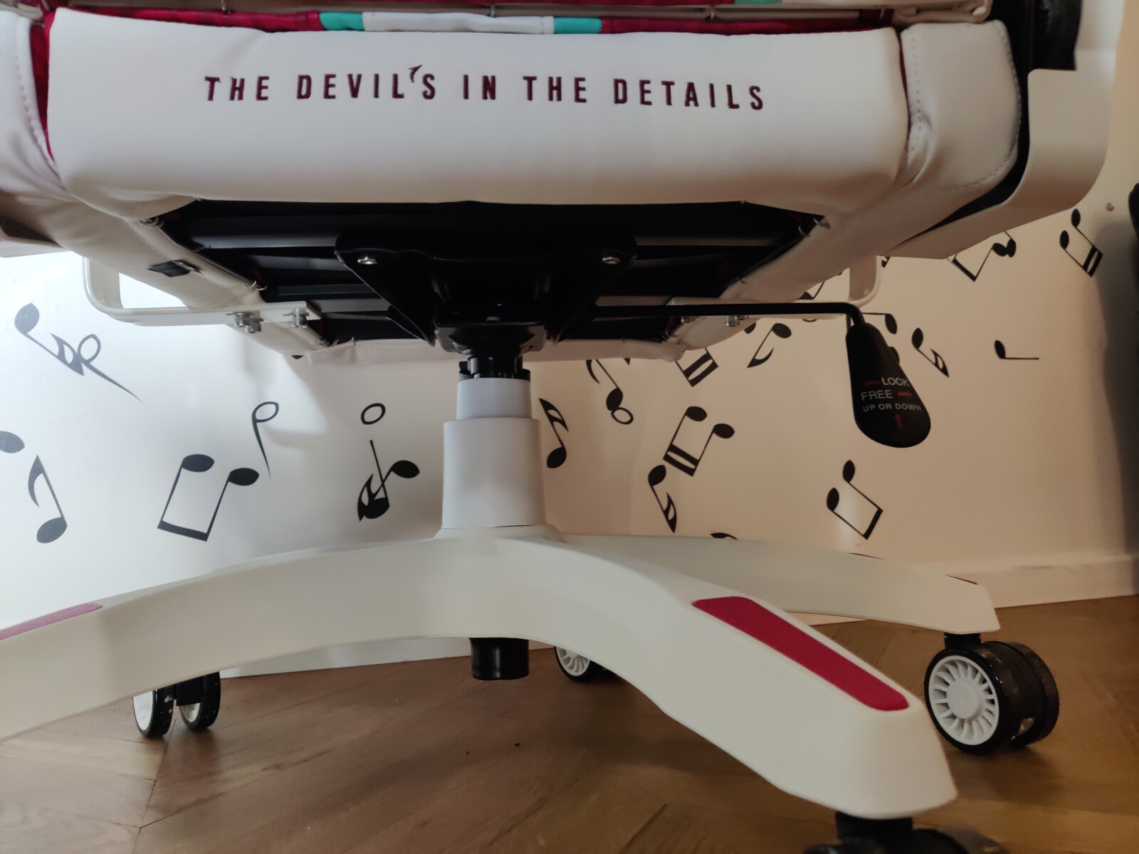Jednym z pierwszych rzucających się w oczy elementów jest unikalny kolor tego fotela. Oprócz tego wyróżniają się także idealnie wpasowujące się logo i slogan firmy (The devil’s in details). Barwy te jednak są czymś więcej niż tylko kolorem, a ich słodycz może polepszyć naszą pracę i niekiedy podziałać odprężająco na nasz mózg. Róż połączony z bielom, a także różne wzorki obecne w wielu miejscach, tworzą niezwykły i wyjątkowy design. Próżno go szukać u konkurencji. Również inne fotele z tej samej serii łączą, unikalne kolory i wzory. Moim ulubionym jednak pozostaje niezmiennie ten różowo biały, na początku jego obecności w moim domu nie mogłem od niego oderwać wzroku.