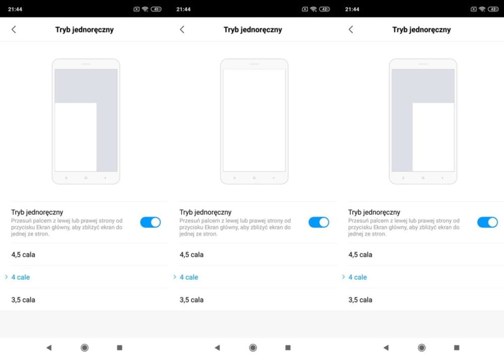 Kolejnym bajerem jest możliwość odblokowywania telefonu za pomocą rozpoznawania twarzy, czyli znane z telefonów z jabłuszkiem FaceID, które w przypadku Xiaomi działa zaskakująco szybko. Warto przy tej opcji włączyć funkcję wybudzania telefonu po podniesieniu. Jako, że Mi 8 Lite jest smartfonem dość pokaźnych rozmiarów, nie mogło tutaj zabraknąć również trybu jednoręcznego, gdzie możemy wybrać również, do jakich rozmiarów zmniejszać się będzie wyświetlacz.